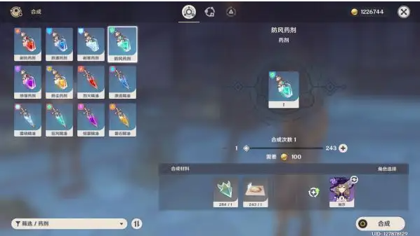 作为一种三星的药剂,它是没有办法直接从宝箱当中获取的,需要玩家自己在合成台当中进行制作。而制作它的材料包括了晶核和蒲公英籽,蒲公英籽只需要玩家来到蒙德城的门口,将所有的蒲公英收集就可以得到了,还是相对比较容易的获得的。但是晶核就比较难获得了,需要玩家捕捉野外的晶蝶,这种蝴蝶一靠近就会飞走,相当的麻烦。玩家可以通过使用角色早柚来大量的获取,毕竟她的天赋是不会惊动小动物,除此之外玩家也可以通过猎杀狂风之核来获取这种材料。等到所有的材料都收集完毕之后,我们就可以在合成台制作防风药剂了,这种药剂可以让我们的风元素抗性大量提升,对于风系敌人有着很强的克制能力。