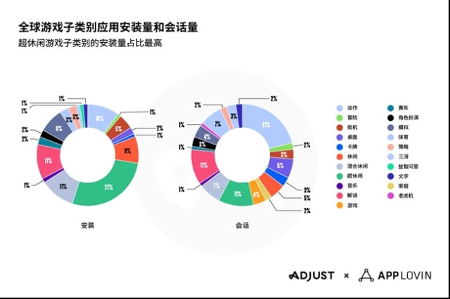 -超休闲游戏引领增长,带动游戏业反弹。2024 年,游戏应用安装量同比增长 4%,尽管会话量下降 0.6%,但超休闲游戏安装量占安装总量的 27%,益智游戏和混合休闲游戏各占 11%。