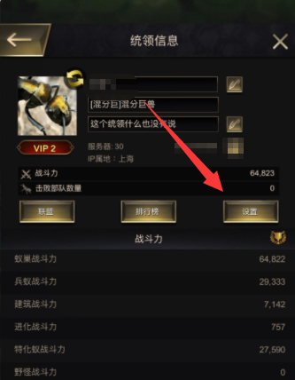 3、在战力页面,点击右下角的设置。(注:IOS暂未上线兑换码功能,仅安卓用户可以兑换)