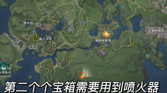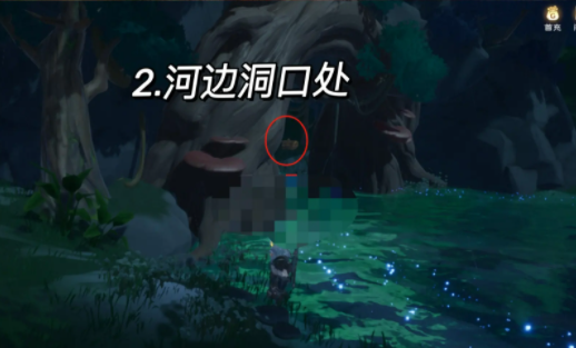 2、第二个宝箱需要玩家们使用喷火器,就在下列图中所示的河边洞口里面可以找到。