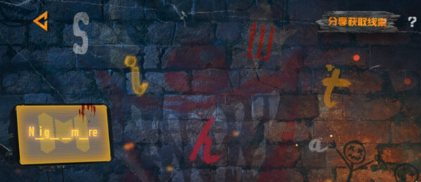 第一关:需要使用墙上的字母来拼写单词,最终填空得到的单词是nightmare,所以需要填入的字母依次为:ihta
