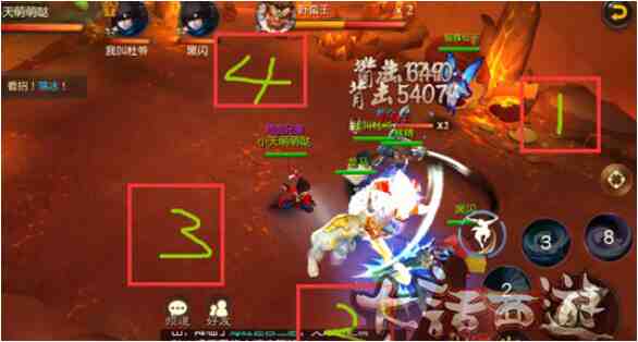 我图片所标记的1、2、3、4这四个方位出现四条凤凰,所以要尽快进行解决主怪。主怪死了就赢了,如果主怪不死的话那就有点难了。