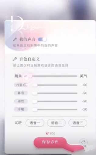 2、同时自定义三次不同的语音音色,保存之后在游戏自由更换;
