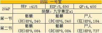 羁绊:415、EXP:5690、QP:4400、九字兼定*1