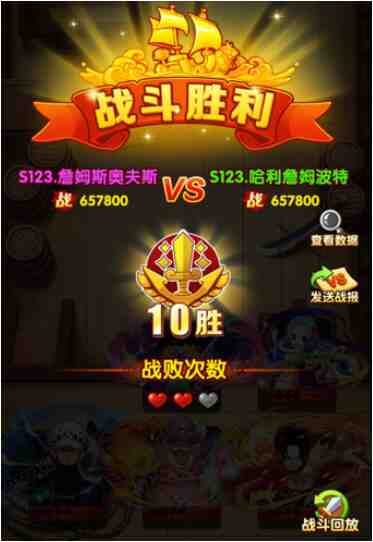 “英雄争锋”是一个跨服“PVP”玩法,各位船长通过选取随机提供的伙伴组建自己的卡组与其他船长展开战斗,每一套卡组达成三负或十胜即宣告本轮结束。胜场的积累能够帮助你在本赛季中提高排名以及更多奖励,每个赛季持续一个月。只有运气与实力并重的船长才能名列排行榜。