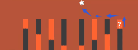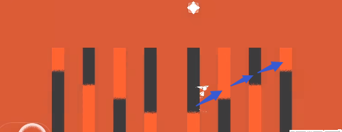 2、一直往上移动,走到头跳一格到右边的红色方块上。
