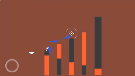 1、向前跳之后就会来到右下的红色方块上,再接着往右走。