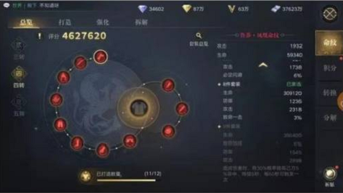 3、四转推荐使用的命纹是凤凰·鲁莽或者凤凰武勇,这个得根据你个人情况来决定,比如你致命不高,还低于90%的概率,就选鲁莽。假如你致命一击概率已经一百多了,推荐武勇。