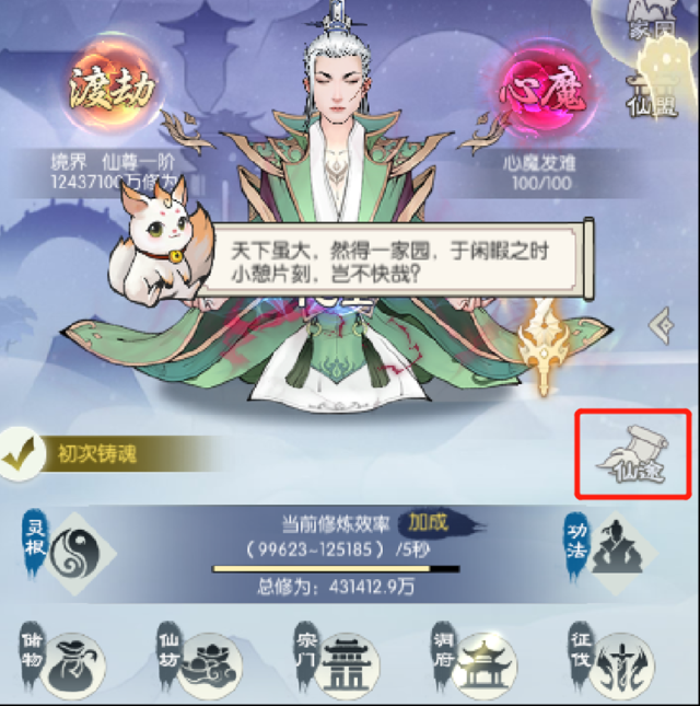 仙缘、仙礼与(看广告)修为获取三项整合在同一功能界面内,只保留一个入口按钮,释放主界面空间。